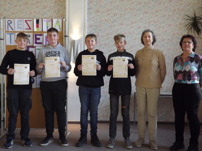 Tamara Fliegner erkämpfte sich unter 386 weiteren Teilnehmern der Klassenstufe 7 landesweit mit 273,75 erreichten Punkten einen großartigen 3. Platz. In der 9. Klasse erreichte Diyar Sen mit 271,75 Punkten landesweit den 4. Platz seiner Altersgruppe.